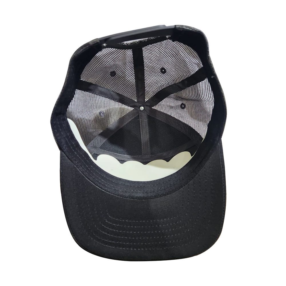 This high-density trucker hat is manufactured by Alvieva Apparel Ltd. with a structured front and breathable rear panel, offering comfort and durability for everyday wear.