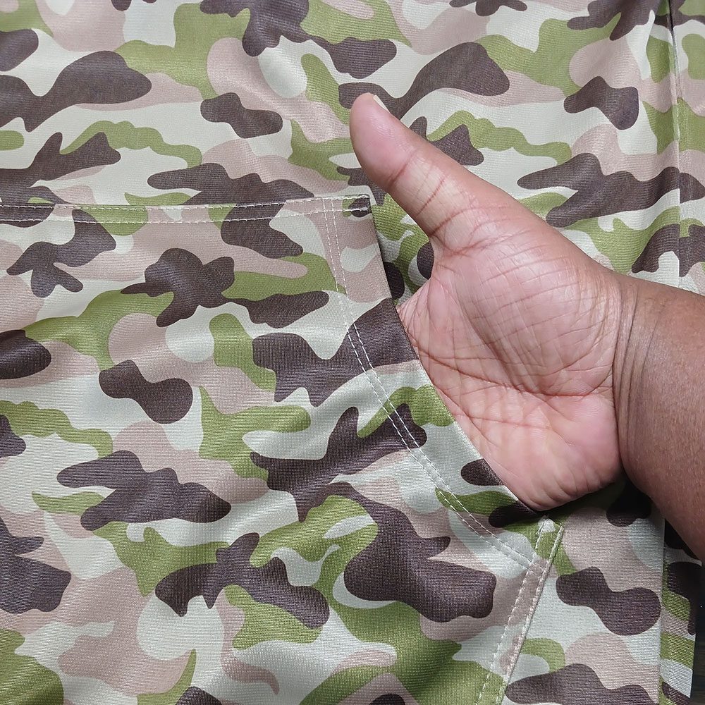 The camouflage pattern is designed to blend seamlessly into natural environments, while the lightweight fabric ensures all-day comfort without overheating. This product is ideal for brands, organizations, and retailers seeking customizable, performance-driven hunting apparel with reliable manufacturing and quality control.
