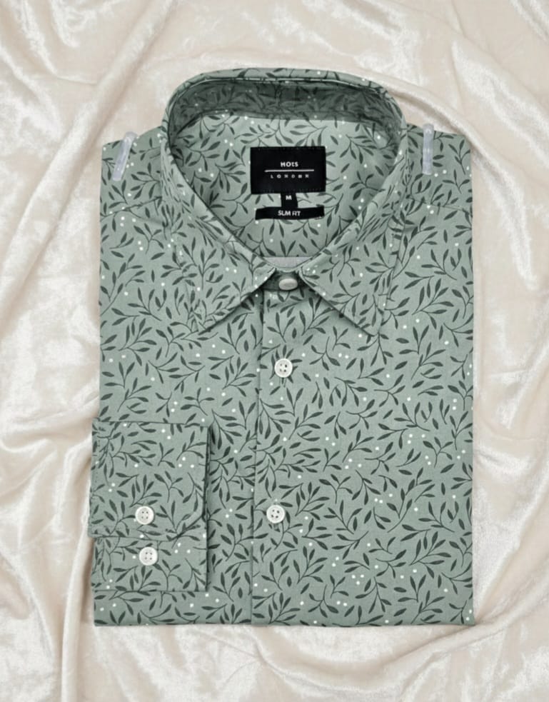 The shirt features a no-pocket minimalist front, making it ideal for modern casual fashion, corporate casual lines, and private label branding. The long sleeves are finished with a refined two-button cuff, allowing easy adjustment and a polished look.