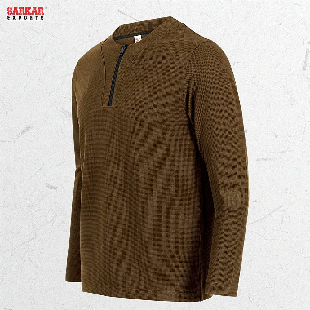 This Coffee Color Premium Zip Swipe Shirt combines functionality with refined casual styling. Produced using 300 GSM waffle fabric, it offers a textured finish with excellent durability, making it suitable for premium apparel lines and bulk orders.