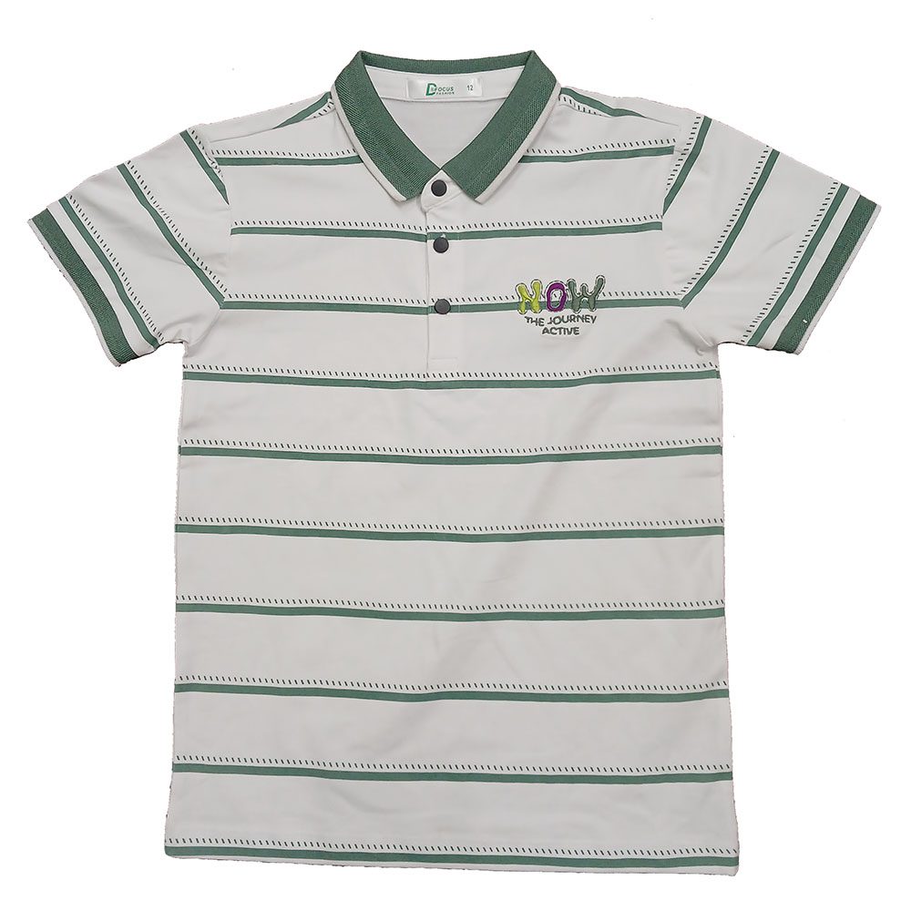 The Striped Polo Shirt with Print & Patches offers a modern variation of the classic polo design. The striped pattern adds visual depth to the garment while printed graphics and patch applications create strong branding opportunities.